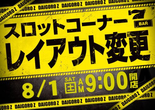 こんにちは🌷 DAIGOROZ厚別店です! 8月1日(土)はレイアウト変更 となっております⭐ 開店時間は9時です!! 抽選時間は8時45分となっております!! ご来店お待ちしております💖